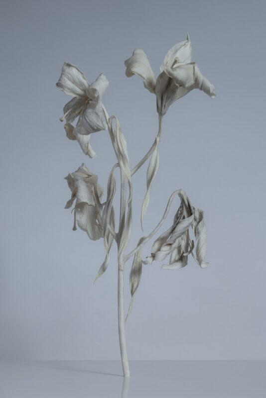 鹿の角や骨、身近な草花をモチーフとした作品群においては、生と死、自然と人為、象徴と実体といった対立項が静かに交錯する。そこでは彫刻は固定された形態ではなく、生成と変容のプロセスとして提示される。形を与えるのではなく、すでにそこに在ったものを引き出す行為なのである。